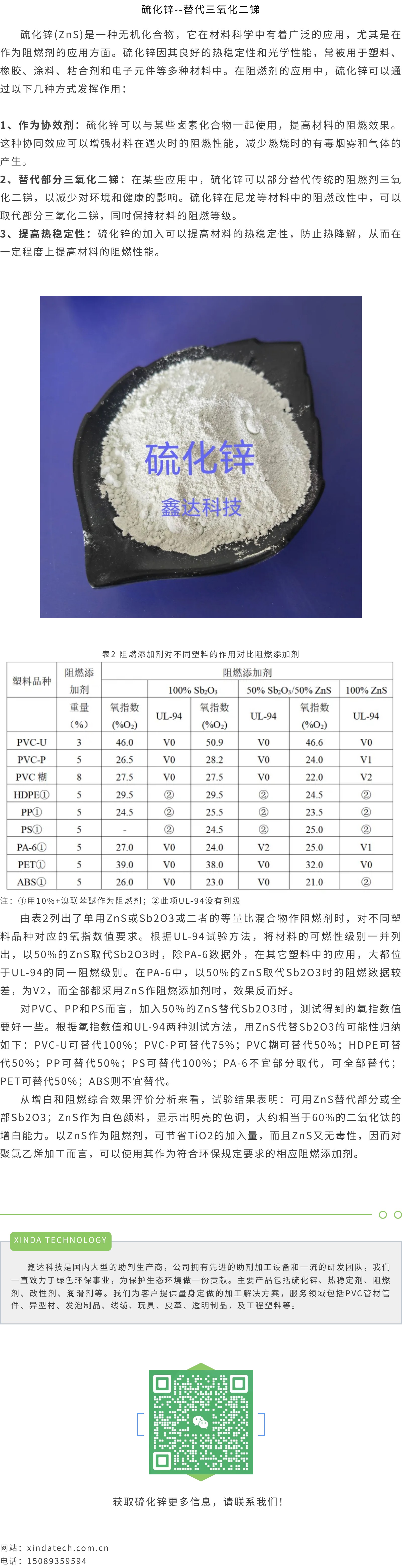 硫化鋅 三氧化二銻替代品